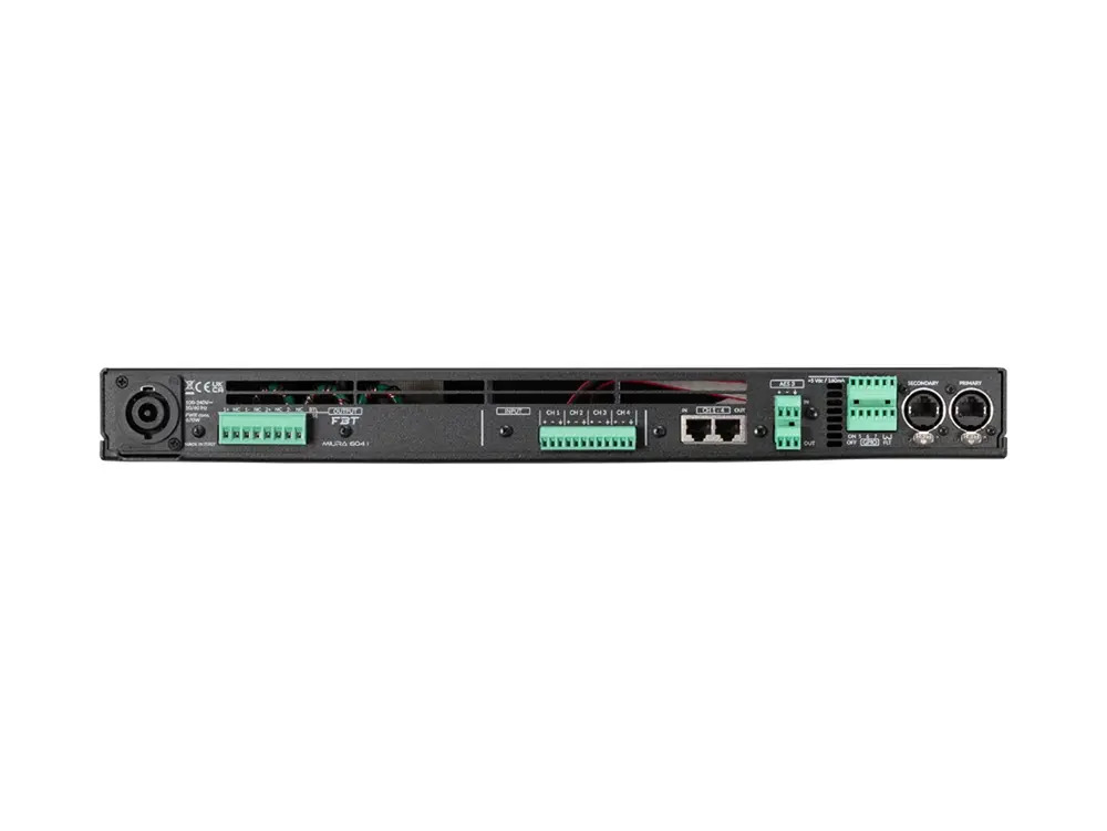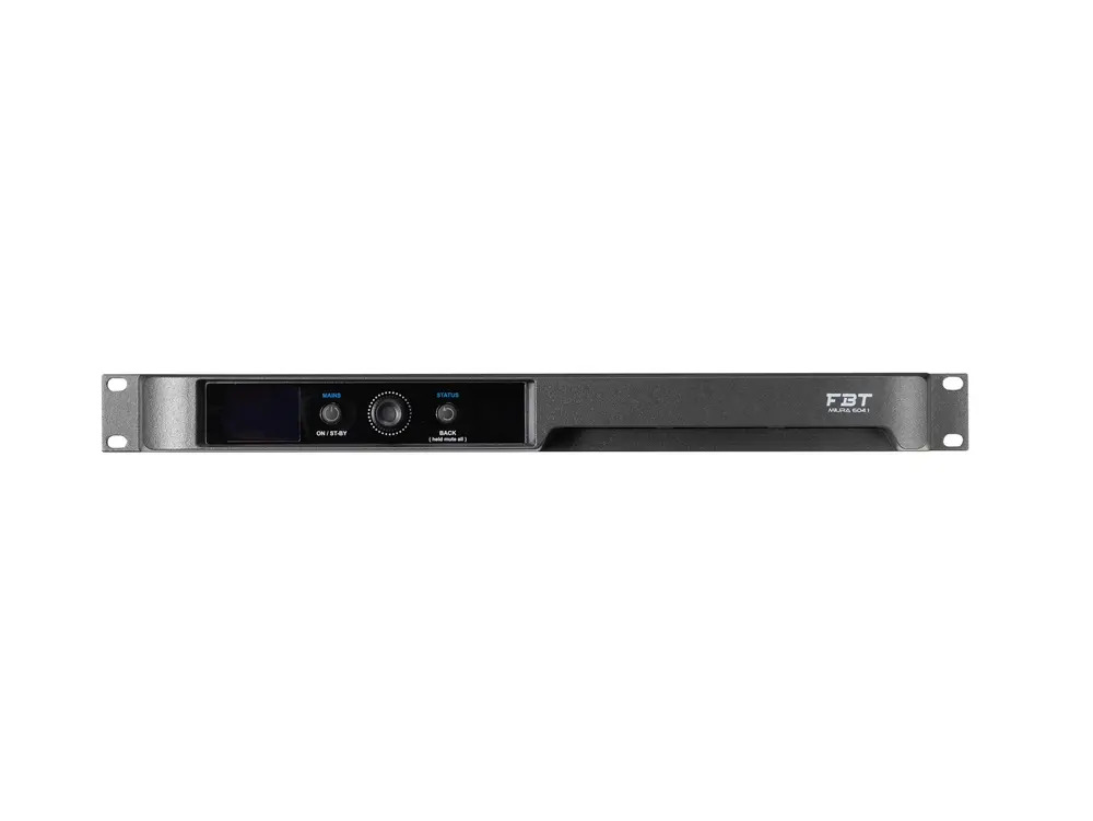 MIURA 604I is a compact 1U, 4-channel Class D amplifier developed for installation applications requiring efficiency, flexibility, and low-profile integration. It delivers 4×150 W at 4–16 Ohm or 2×300 W at 70/100V in bridge mode, supporting both low-impedance and high-impedance systems with full asymmetric loading.