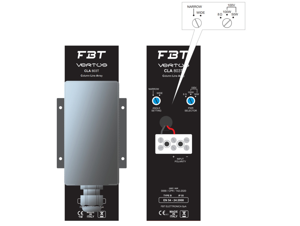 Suited to both indoor and outdoor use, the VERTUS CLA range comprises two models: the VERTUS CLA 803, with eight 3 full range woofers, and the CLA 403, with four 3" full range woofers. Both versions have the same sleek, lightweight and durable, powder-coated aluminium housing. Completely dustproof and waterproof, the enclosures grille is covered with a special hydrophobic fabric to ensure absolute rejection of all atmospheric agents. Full EN54-24 certification also means both columns can be used for emergency and evacuation applications in the event of a fire, all VERTUS CLA columns are equipped with a ceramic terminal block and thermal fuse.