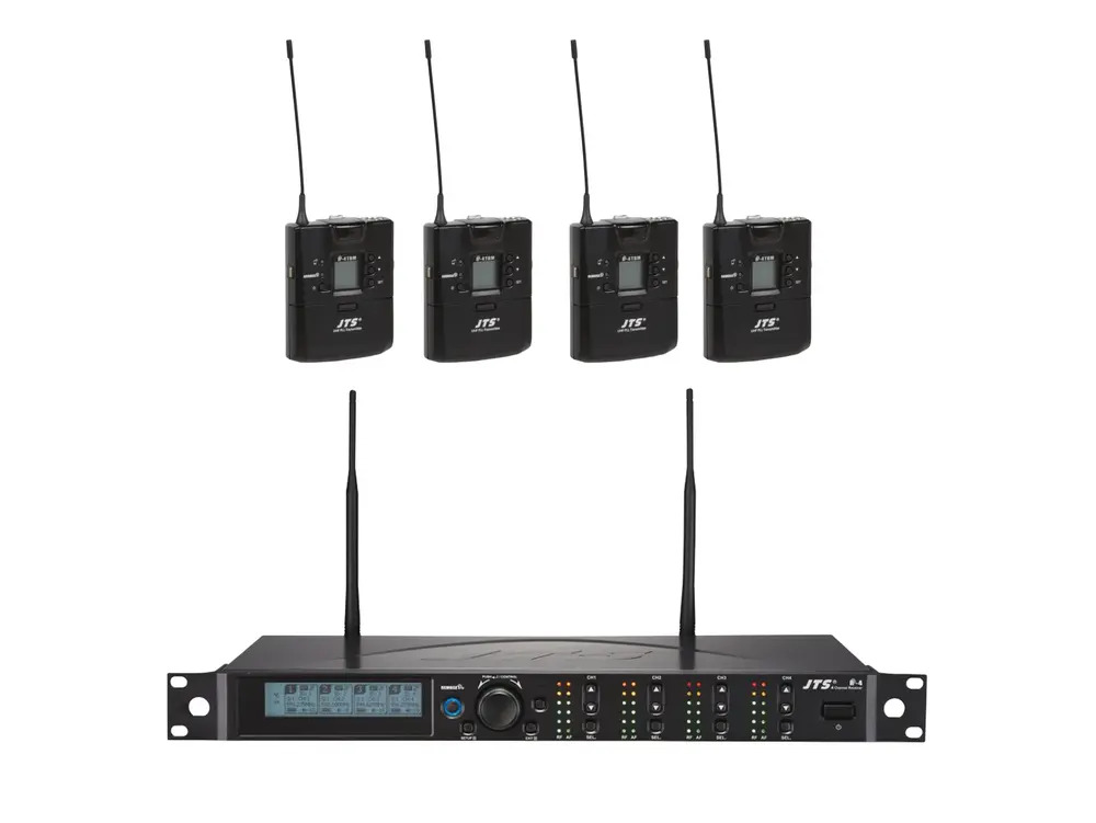 The JTS R-4 is our newest generation of quad multi-channel wireless technology. It features 4 channels within a 1U, 19" rack mount chassis.
