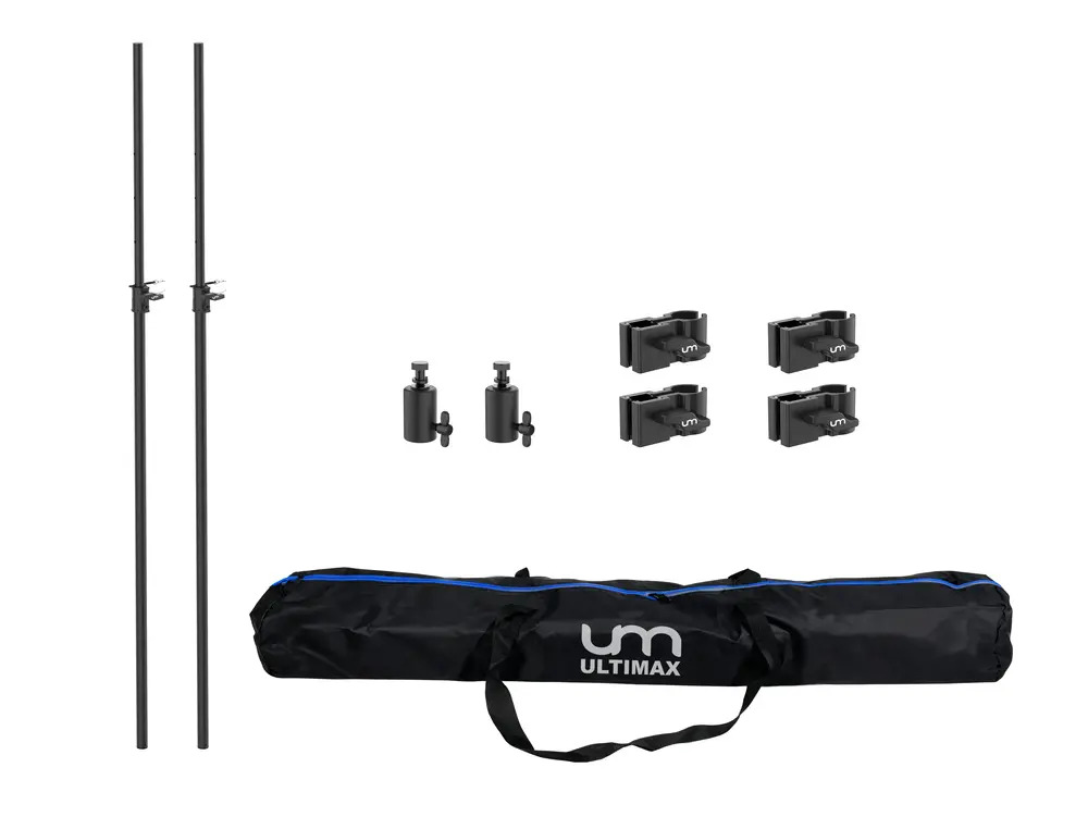 Introducing the Ultimax DJBoothGP MKII Light Post System, the upgraded, all-in-one solution for adding style, strength, and versatility to your Ultimax DJ Booth setup. Designed to fit seamlessly with the TrussBooth, CombiBooth, CombiBooth XL, DJBoothPro, and DJBoothPro XL, this light post system provides two robust and adjustable poles for safely mounting lighting, effects, and other equipment, ensuring maximum coverage across the dancefloor.